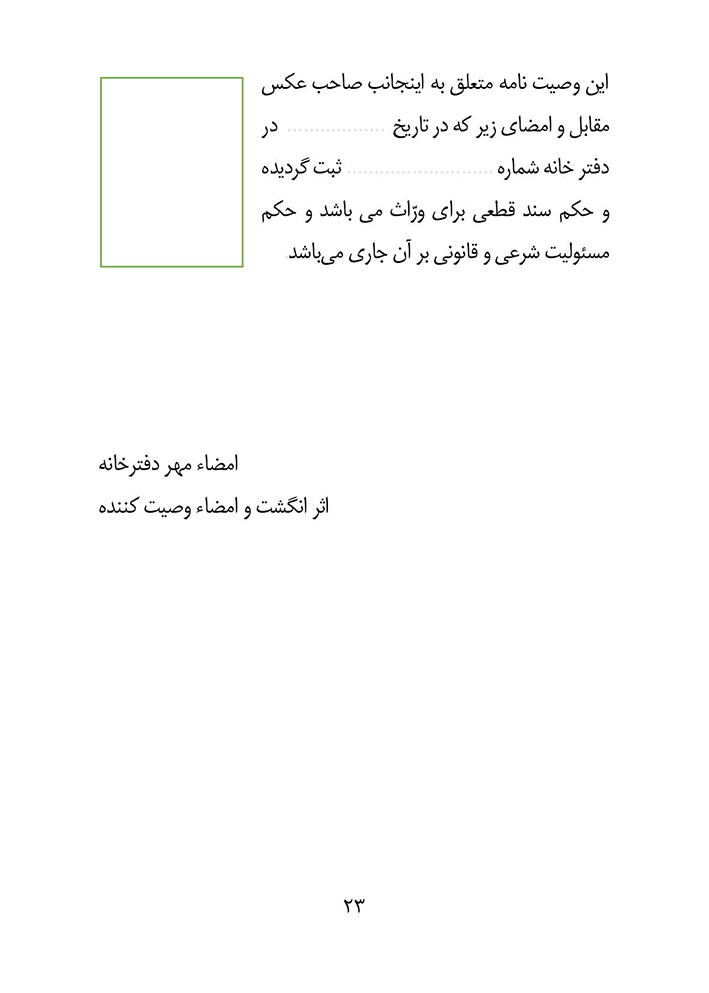 کتاب وصیت نامه شرعی و قانونی – انتشارات نگاران قلم